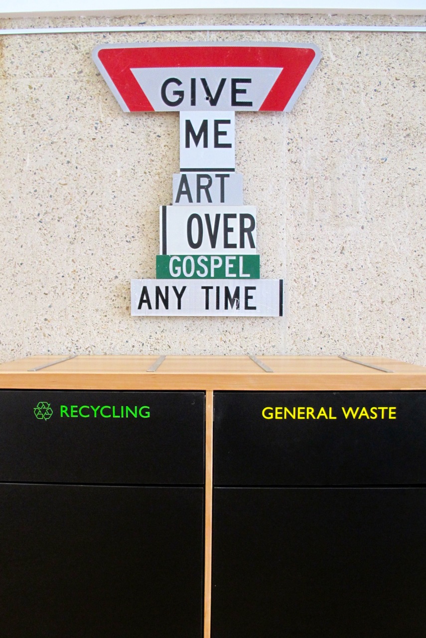 My wordy artworks at the latest Bespoke installation at Queensland Museum. Fitting in nicely with the salvage/recycle theme.
